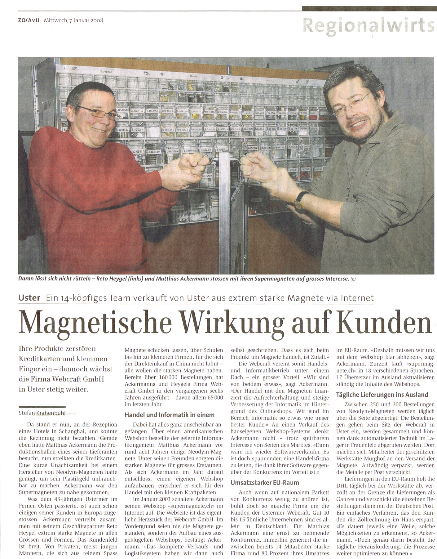 Zürcher Oberländer / Anzeiger von Uster, Januar 2008 (jpg, 923 KB) -