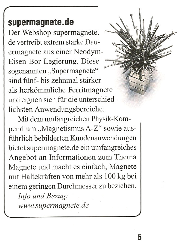Der Shop vertreibt seit 2003 extrem starke Neodym-Magnete.